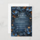An enchanting deep-navy wedding design wrapped in glowing copper florals and delicate botanical detailing. This immersive, moody palette creates a romantic twilight atmosphere, perfect for elegant evening weddings or couples who love rich, dramatic aesthetics. The ornate frame draws the eye to your names and details, giving the entire piece a luxurious, storybook feel. A sophisticated choice for modern romantics who want their celebration to feel timeless and striking.