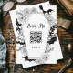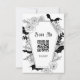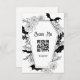 Donnez le ton à votre mariage hantement élégant avec cette carte de boîtier RSVP d'inspiration gothique. Avec son cadre en forme de cercueil orné de fleurs noires complexes et de chauves-souris croustillantes, ce design conviendra parfaitement aux couples qui projettent un mariage sur le thème éffrayant-chic ou Halloween. L'avant de la carte comprend un code QR scannable pour les invités à RSVP sans effort, tandis que l'arrière fournit des détails RSVP supplémentaires avec un accent minimaliste de chauve-souris.