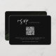 Moody Tropics, carte rsvp de code QR mariage. Edgy script graphique "rsvp" titre et sombre feuille de palme tropicale support photo.