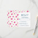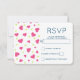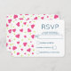 Carte RSVP avec un motif mignon composé de coeurs roses et verts sur fond blanc.
