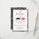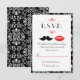 Des lèvres rouges pulpeuses et une moustache élégante sont les vedettes de ce carton d'invitation de mariage moderne. Le motif damassé en arrière-plan ajoute une touche de classe.