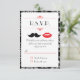 Des lèvres rouges pulpeuses et une moustache élégante sont les vedettes de ce carton d'invitation de mariage moderne. Le motif damassé en arrière-plan ajoute une touche de classe.