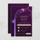 Mystical Rainbow Deep Plum Sun Moon Stars Astronomie Celestial Cosmic Galaxy Space Wedding Cartes RSVP propose un cadre de soleil, de lune et d'étoiles couleur arc-en-ciel sur un arrière - plan de prune profond avec vos informations de carte RSVP personnalisées en typographie élégante. Personnalisez en modifiant le texte dans les zones de texte. Pour effectuer des modifications avancées, accédez à l'option "Cliquez pour customiser plus loin" sous "Personnaliser ce modèle". Conçu pour vous par Evco Studio www.zazzle.com/store/evcostudio