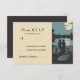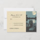 cartes RSVP mariage romantique avec mariée et mariée, arbres, forêt, lac, lune et lumières à cordes.