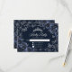 Navy silver floral Quinceanera RSVP reply card. Features, script font, silver butterflies, watercolor roses and tiara. Perfect for an elegant princess style glam celebration. Personalize with your own details.