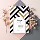 Élevez votre papeterie mariage avec cette carte RSVP moderne et géométrique, avec des motifs noirs et blancs audacieux accentués de détails dorés chatoyants. Parfait pour les célébrations contemporaines, ce design élégant assure à vos invités un style RSVP. Entièrement personnalisable pour répondre aux besoins de votre événement.