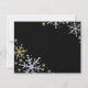Festive mais formelle fête de Noël ou fête de la Saint-Sylvestre RSVP design comprend des flocons de neige en argent et en or brillants et "Oh, What Fun" dans le script, et le libellé qui peut être personnalisé avec votre date d'échéance RSVP. La bordure et le script du flocon de neige ont une parties scintillant texturée qui ressemble à un arrière - plan noir.