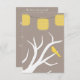 La jolie conception de la carte de réponse RSVP est parfaite pour votre mariage décontracté ou semi-formel. Le design présente les branches d'une silhouette d'arbre blanc. Sur l'une des branches tentaculaires se trouve un oiseau jaune citron. Au-dessus de l'arbre blanc se trouvent des lanternes de papier jaune citron enfilées comme décorations mariages. Le design est posé sur un ton terre gris / brun arrière - plan. L'envers de la carte de réponse RSVP de mariage est le même ton de terre solide. Il y a du texte en police blanche. Le texte est entièrement personnalisable pour répondre à vos besoins mariages. Matching Yellow Birds In A tree and Paper Lanterns Wedding Invitations et timbres-poste également disponibles.