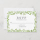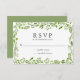 Carte RSVP de mariage rustique encadrée par des feuilles d'oliviers verts sur un arrière - plan blanc. L'arrière est une teinte verte assortie et peut être changée en n'importe quelle couleur. Cette carte RSVP est parfaite pour un mariage d'été.