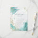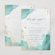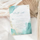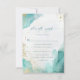 Cette carte de réponse de mariage sur la plage abstraite moderne avec options de menu présente des polices modernes tendance avec une calligraphie script stylisée, encadrée par des éclaboussures d'encre alcoolisée sarcelle et or.