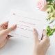 Ombre rose sur le dos avec les détails du repas et le nom de l'invité; accents faux parties scintillant en option