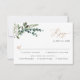 Conçue pour coordonner avec notre collection Rustic Greenery Gold mariage, cette carte RSVP personnalisable, propose des botaniques mélangeant la verdure à l'aquarelle, un script de calligraphie moderne associé à une police serif élégante en noir. Éléments correspondants disponibles.