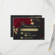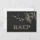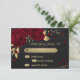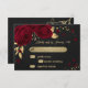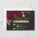Magnifique carte rsvp botanique personnalisable belle fleurs rouge foncé avec feuilles or contre élégant arrière - plan noir