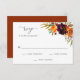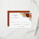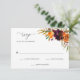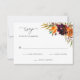 Carte RSVP de mariage floral boho rustique avec un bouquet floral aquarelle peint avec des tons chauds et terreux d'orange brûlée, de terre cuite et de bordeaux profond avec un peu de verdure. Cette élégante carte RSVP aux riches tons d'automne est idéale pour un mariage de automne.