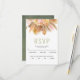 Feuilles de palmiers séchés tropicaux, pampas herbe et fleurs de protéa sauge mariage floral vert carte réponse RSVP. Ce joli design mariage présente un bouquet floral de feuilles de palmiers séchés, des fleurs de protéa et de l'herbe de pampas.