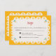 This Papel Picado Yellow Nuestra Boda Spanish Wedding RSVP Card frame is adorned with a cutout pattern resembling a papel picado effect, adding a traditional Mexican touch. Accented with floral and geometric details in vibrant colors, the design exudes warmth and charm, making it perfect for a romantic wedding stationery.