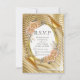Une carte or élégante avec des coins or turnoff volants et des roses crème or pour une carte faire-part chic