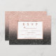Parties scintillant en or rose noir ombre mariage RSVP. Un dégradé d'or rose moderne et de parties scintillant noire avec cadre d'or faux rose rsvp faire-part de mariage. Parfait pour un mariage créatif élégant et chic.