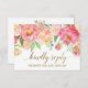 Cette carte de réponse RSVP avec demande de chanson pour fleurs de pivoine pêche et rose est parfaite pour un mariage élégant. Le design floral présente une belle composition de pivoines à l'aquarelle dans des tons rose saumon et corail assortis à une calligraphie délicate en faux or. Créez votre liste d'invités de mariage et votre liste de chansons pour la piste de danse en même temps ! Cette carte de réponse de mariage demande commodément aux invités s'ils pourront assister à votre mariage, et quelle chanson les fera danser.