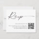 Carte moderne QR Code photo noir et blanc RSVP. Cliquez sur le bouton Personnaliser pour customiser cette conception avec vos détails.