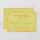 Une simple et élégante calligraphie colorée carte rsvp de mariage rétro. Comme vous le voyez, il a un arrière - plan vert moderne vintage avec écriture manuscrite orange dans un cadre dessiné à la main. Et des rayures peintes à la main rose et orange sur le dos. Vous pouvez le modifier en cliquant sur le bouton Personnaliser.