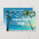 Cette plage tropicale destination mariage dîner réception RSVP carte postale avec palmiers romantiques et lampes à cordes. L'arrière de la carte est à l'ombre bleue et offre un espace où choisir ou choisir ses plats. Facile à customiser avec vos propres noms et informations. Photographie et design de T.K. Goforth, tous droits réservés. N'oubliez pas de vérifier les articles correspondants dans ma collection de Mariages Tropical Beach and String Lights dans ma boutique Zazzle :