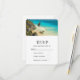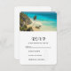 Une carte RSVP avec une belle photo de Tulum, Mexique. Eaux turquoise sur un rivage sablonneux. Le vent balaya les palmiers qui soufflaient dans la brise près d'une falaise escarpée. Apaisant et relaxant.
