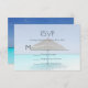 Carte RSVP de mariage avec photo d'une plage tropicale pittoresque aux Maldives. Plage de sable blanc et eaux cristallines avec parasol en chaume isolé. Idyllique et sereine.