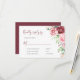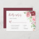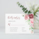 Carte RSVP de mariage romantique rustique avec un bouquet rose d'aquarelle couleur rose et bordeaux peint à la main avec des feuilles verts et du feuillage et un script de calligraphie chic et à la main. ++++++++++++++++++++ Si vous n'avez pas besoin d'options de repas, supprimez simplement le texte ! ++++++++++++++ Admission et papier à lettres correspondants disponibles dans la collection. ++++++++++++ Convient pour le printemps été ou automne jardin d'automne jardin extérieur ou mariages de ferme.