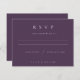 Belle carte RSVP prune violet, simple, élégante, minimaliste. Entièrement personnalisable pour votre mariage ou événement.