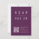 Design de typographie chic moderne en prune violet, or et blanc, simple et élégant, grande carte de mariage RSVP avec code QR pour mariage formel minimaliste, mariage simple moderne. Voir toutes les pièces correspondantes dans la collection.