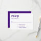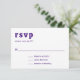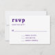 Cartes RSVP de mariage de style moderne avec une disposition simple et minimale avec en-tête une police rétro super. Les couleurs vives sont de couleur jaune violet royal. Les polices / couleurs peuvent être modifiées dans l'outil d'édition de conception.