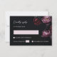 This romantic dark moody Wedding Response Card features 3D purple and dark red peony flowers on a black background. Matching invitation available.