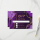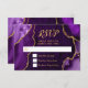 Make a bold and elegant first impression with this purple and gold agate marble RSVP card, featuring rich jewel tones, organic stone textures, and shimmering gold accents perfect for fall and winter celebrations. The deep amethyst hues paired with metallic gold detailing create a dramatic yet refined look ideal for a wedding RSVP, birthday RSVP, or Sweet Sixteen RSVP with a formal, modern, or glamorous aesthetic. Inspired by natural agate and geode patterns, this luxurious design coordinates beautifully with upscale seasonal events and is fully customizable to match your details, adding timeless sophistication to autumn and winter celebrations alike.