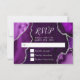 Make a bold and elegant first impression with this purple and silver agate marble RSVP card, featuring rich jewel tones, organic stone textures, and shimmering silver accents perfect for fall and winter celebrations. The deep amethyst hues paired with metallic silver detailing create a dramatic yet refined look ideal for a wedding RSVP, birthday RSVP, or Sweet Sixteen RSVP with a formal, modern, or glamorous aesthetic. Inspired by natural agate and geode patterns, this luxurious design coordinates beautifully with upscale seasonal events and is fully customizable to match your details, adding timeless sophistication to autumn and winter celebrations alike.