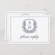 Cartons Réponse QR Code Marine Crest Bleu Mariage Monogramme