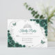 Emerald green silver and white floral Quinceanera RSVP reply card. Features, script font, silver butterflies, watercolor roses and tiara. Perfect for an elegant princess style glam celebration. Personalize with your own details.