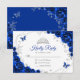 Royal blue silver and white floral Quinceanera RSVP reply card. Features, script font, silver butterflies, watercolor roses and tiara. Perfect for an elegant princess style glam celebration. Personalize with your own details.