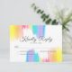 Beau mariage arc-en-ciel RSVP avec de jolies touches de peinture artistique pleine de couleurs vives. Cette carte de réponse colorée lit Kindly Répondre et est parfaite pour un couple artistique ou un mariage gay et lesbien. Gaie et amusante pour une cérémonie d'été.