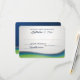 Carte de réponse à ondes bleues et vertes en acier pour compléter notre nom personnalisé bar à ondes mitzvah invitations. Modifiez les polices et le texte selon vos préférences.