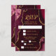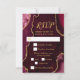 Make a bold and elegant first impression with this burgundy red and gold agate marble RSVP card, featuring rich jewel tones, organic stone textures, and shimmering gold accents perfect for fall and winter celebrations. This design includes customizable text boxes and meal selection checkboxes, allowing your guests to indicate their preferences. The default options are beef, chicken, or vegetarian, but these can be easily changed to suit your event. The rich wine and crimson hues paired with metallic gold detailing create a dramatic yet refined look ideal for a wedding RSVP, birthday RSVP, or Sweet Sixteen RSVP with a formal, modern, or glamorous aesthetic. Inspired by natural agate and geode patterns, this luxurious design coordinates beautifully with upscale seasonal events and is fully editable to match your details, adding timeless sophistication to autumn and winter celebrations alike.