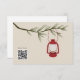 Un mariage extérieur r.s.v.p. avec un thème sauvage / camping avec une illustration d'une lampe à huile rouge accrochée à une branche d'arbre à feuillage persistant.