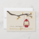 Un automne en plein air mariage r.s.v.p. avec un thème sauvage / camping avec l'illustration d'une lampe à huile rouge accrochée à une branche d'arbre avec des feuilles orange et marron.