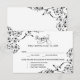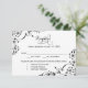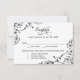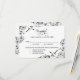 Collectez les réponses des invités et leurs choix de dîner avec cette élégante carte de réponse RSVP présentant des accents de fleurs noires ornées et des coins à rosace. Le design associe un en-tête « Réponse » en calligraphie élégante à une typographie serif épurée pour un effet formel et intemporel. Les champs pour les noms des invités, la présence et trois choix de plats principaux personnalisables sont clairement organisés sous la date limite de réponse. Le travail de défilement botanique complexe avec des motifs de baies circulaires ajoute un charme vintage distinctif. Tout le texte est entièrement modifiable.
