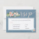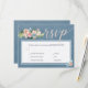 Elégant script de calligraphie blush mariage carte RSVP avec options de menu avec un joli bouquet d'ivoire crème pêche et des fleurs blush avec feuilles verts et feuillage et sur un arrière - plan en acier bleu patiné de style tableau noir. +++++++++++++++++ Idéal pour le printemps ou l'été | élégante ferme rustique | jardin extérieur jardin mariages à thème. +++++++++++++++++ Si vous n'avez pas besoin des options de repas, supprimez-les simplement lors de la personnalisation de votre carte !