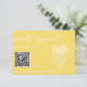A simple and elegant calligraphy colorful retro wedding QR code scannable rsvp card. That has a vintage modern stylish yellow background with white script and hand drawn whimsical vintage floral bouquet on the front and cake bow on the back. Elegant and chic with handwritten lettering . It is all editable by clicking on the personalize button.