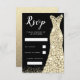 Carte RSVP de robe noire de fête d'anniversaire de mariage de paillettes d'or