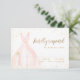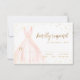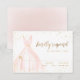 Les cartes RSVP de Quinceanera élégantes présentent une robe rose blush aquarelle avec des détails de paillettes dorées fausses, idéales pour une fête d'anniversaire de 15 ans.