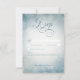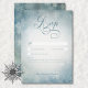 Annoncez votre mariage d'hiver de merveilleux avec une touche d'élégance éthérique. Notre carte de réponse mariage enchanteresse avec détails mais aucun choix de dîner présente un arrière - plan doux et rêveur qui rappelle un ciel d'hiver crépusculaire. Les teintes bleues Dusty se fondent harmonieusement avec des accents blancs délicats, créant une toile pour les flocons de neige en chute libre. Un flou ovale blanc captivant repose sur ce paysage serein, berçant vos détails mariages dans une étreinte romantique. Le texte, une belle combinaison de script fluide et de polices serif vintages dans un bleu profond et poussiéreux, se distingue avec une clarté élégante. Cette suite enchanteresse saisit la beauté d'une chute de neige hivernale, en plantant parfaitement le décor de votre histoire d'amour pour fleurir au milieu de la magie de la saison. Créé par Simply Farmhouse Press.