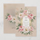 Une carte de réponse bohème romantique avec des pivoines roses, des fleurs ivoire et une verdure douce. L'écriture dorée élégante ajoute de la sophistication. Parfait pour correspondre à votre suite d'invitation de mariage rustique bohème.